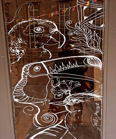 The concept and value of your business printed on the wall or painted on the vitrine.