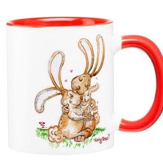 Ceramic mug with a printed watercolor illustration in the middle. it's also with a special red color to protect the inside and holding part of the mug.