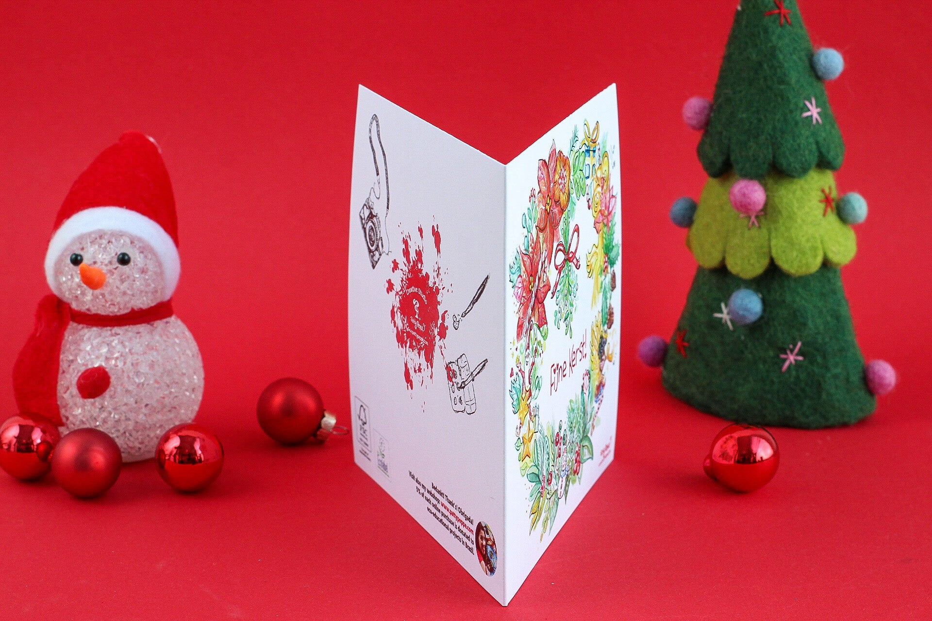 This card can also be written in other languages. I illustrated everything I love about Christmas. Send me an email info@pattypeppe.com for customized artwork.